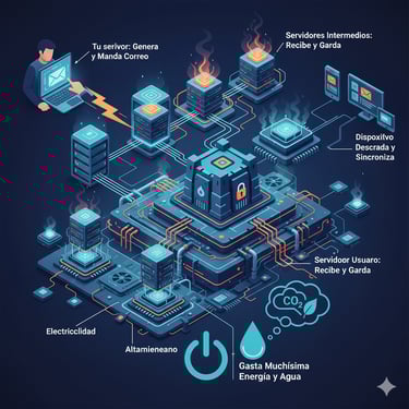 Es decir: no es solo un clic → es electricidad, almacenamiento y refrigeración de centros de datos (que gastan muchísima energía y agua).